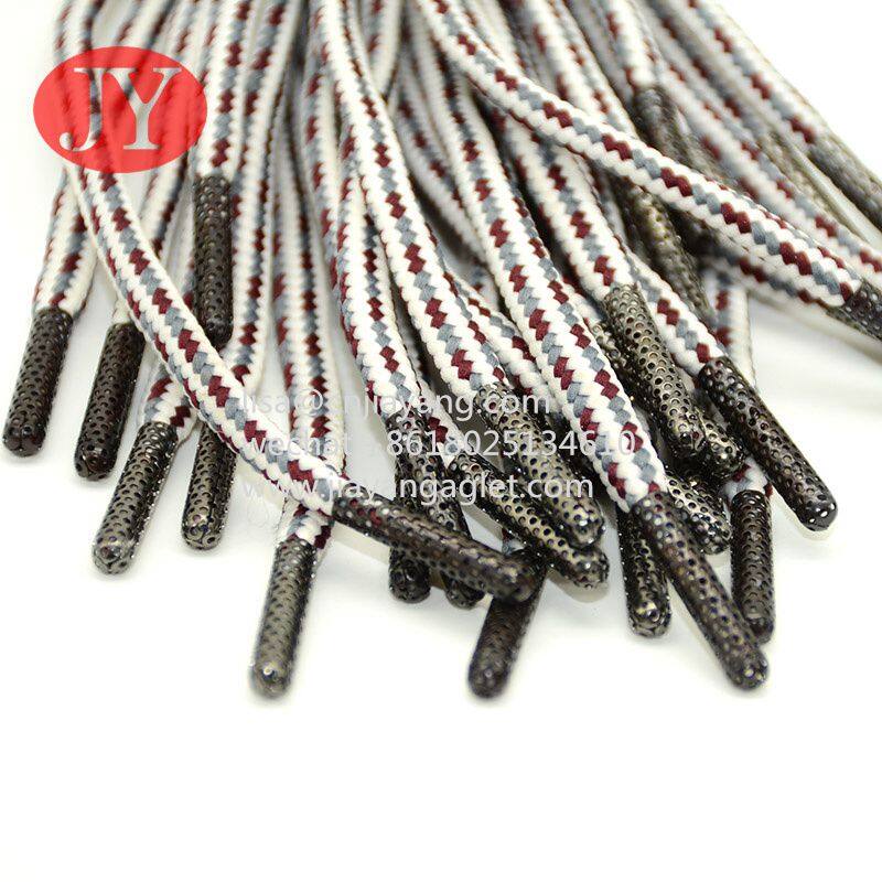 Изготовлено в Китае. Круглый шнурок для обуви с пластиковым наконечником. Заказной двухцветный шнурок с наконечниками на концах шнурка.
