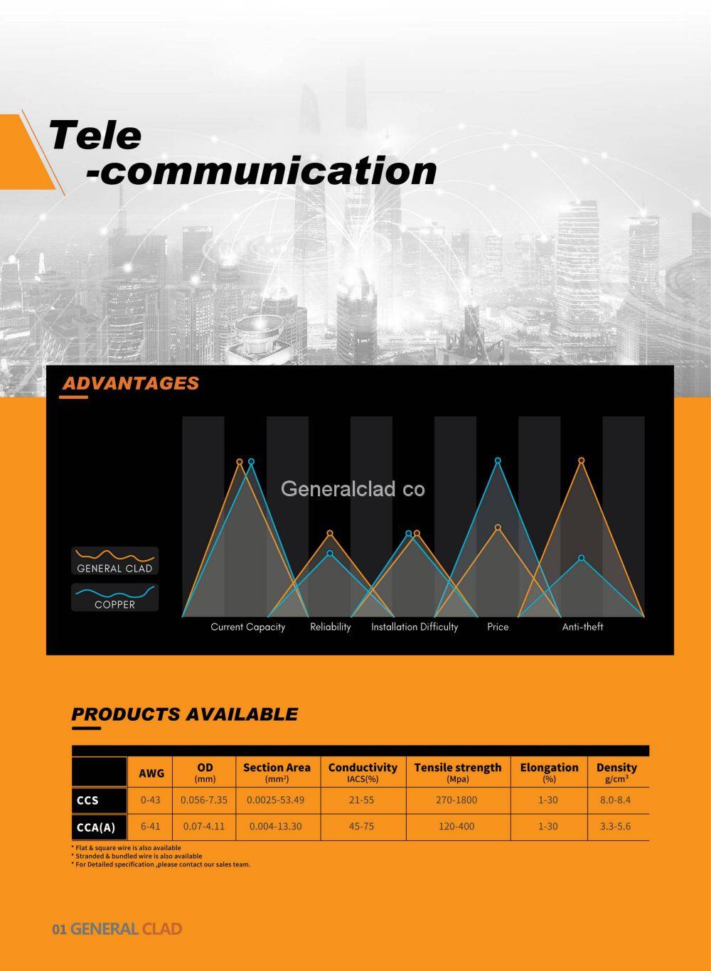Двухметаллическая телекоммуникационная провода с медным покрытием на алюминиевом основании