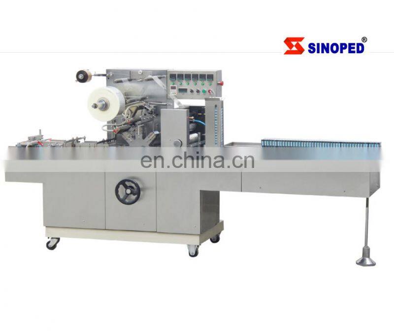 Автоматическая упаковочная машина для обёртывания в пленку BOPP или целлофан коробок для презервативов, мыла, парфюма и карт с высокой скоростью