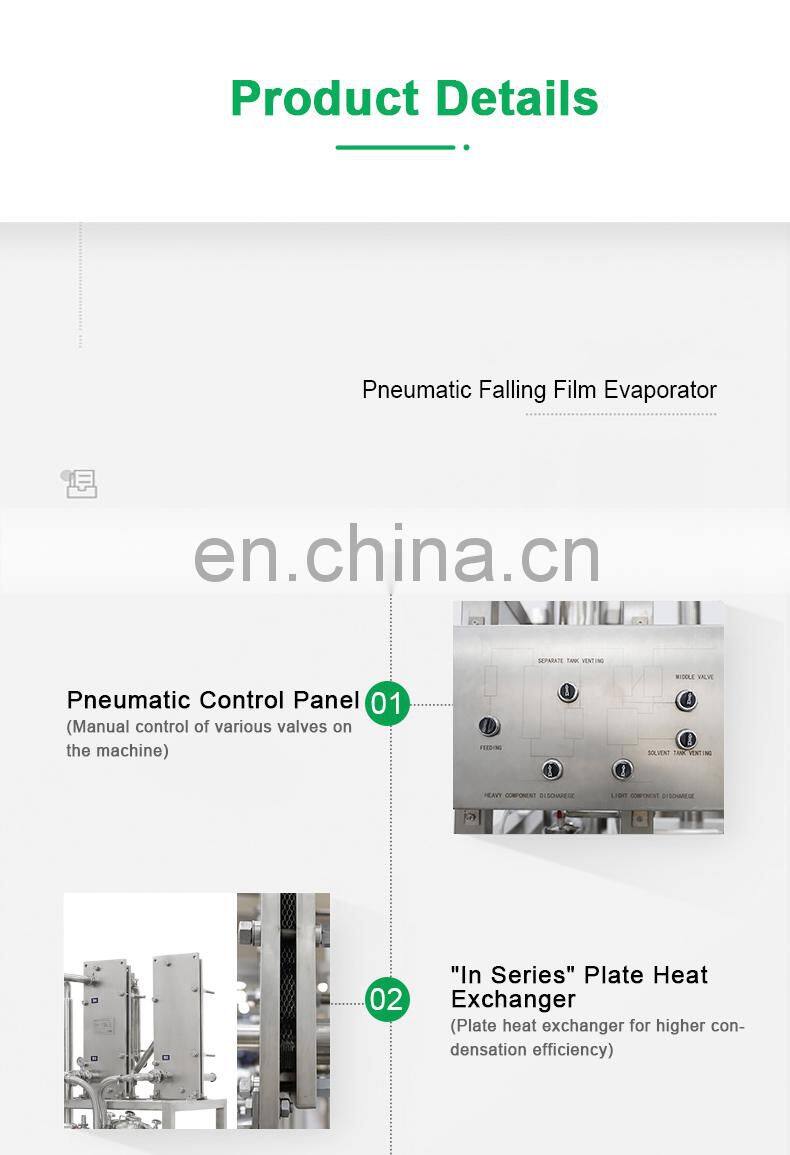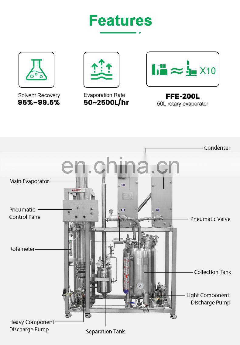 5 л 100 л 200 л 500 л 20 Галлонов Нержавеющая Сталь Одноэффектный Промышленный Цена Этанол Вакуумный Капельный Фильмовой Эвапораторная Система