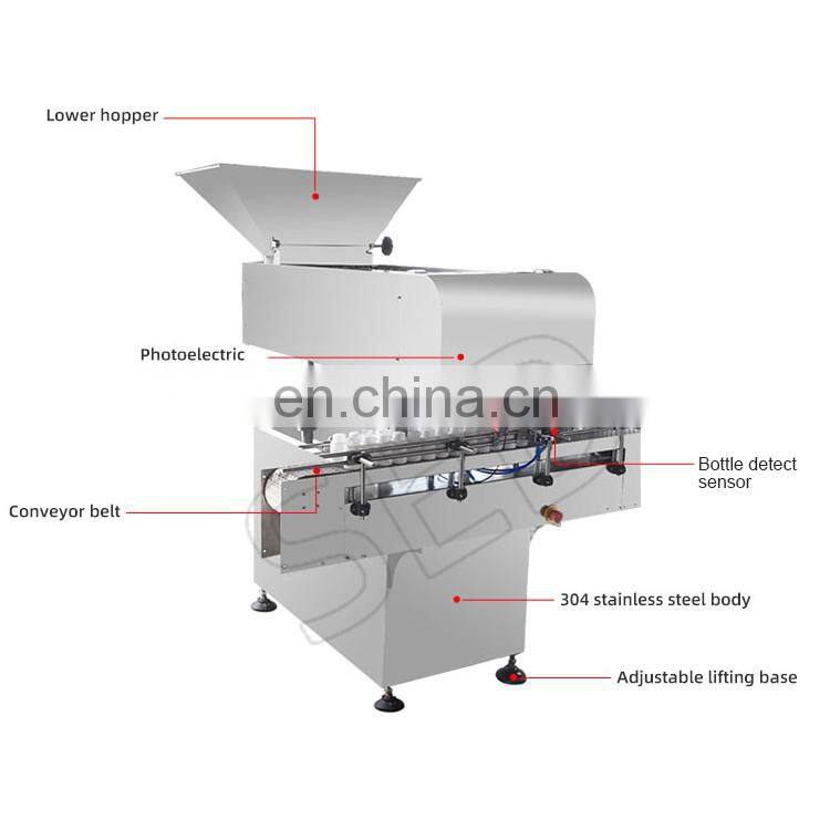 Автоматическая электронная счетная машина может подсчитывать и заправлять в бутылки таблетки, капсулы, пилюли и другие твердые частицы различных размеров, соответствующая требованиям GMP.