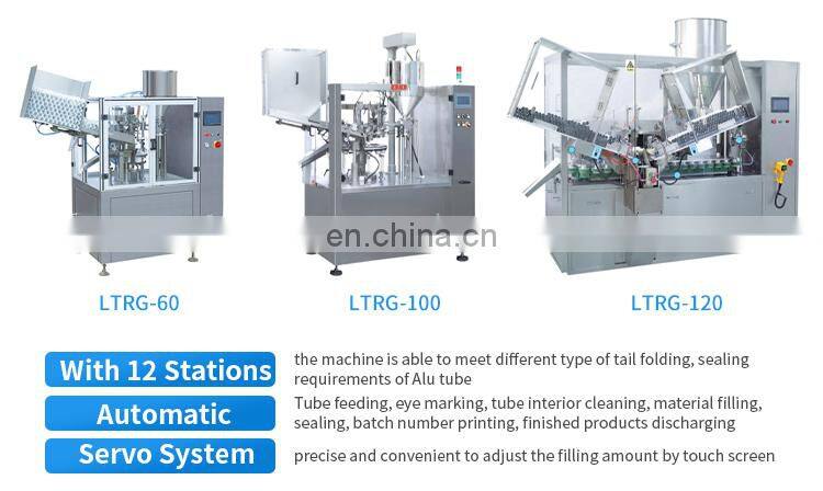 Главная > Продукты > Оборудование для производства мазей/кремов > Автоматическая двухголовая машина для наполнения и запечатывания труб LTRG-120. Машина для наполнения пластиковых труб пастой для зубов, мазями, кремами и клеями