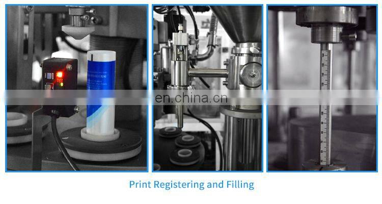 Эта машина представляет собой высокотехнологичный продукт, успешно разработанный и спроектированный с использованием передовых зарубежных технологий и строго соответствующий требованиям GMP. Применен ПЛК - контроллер и цветной сенсорный экран, что позволяет осуществлять программируемый контроль работы машины. Она может автоматически выполнять операции заполнения мази, крем - желе или вязких материалов, герметизации или скрепления хвоста, тиснения номера партии (включая дату производства). Это идеальное оборудование для заполнения и герметизации алюминиевых тюбиков в косметической, фармацевтической, пищевой и клеевой отраслях.