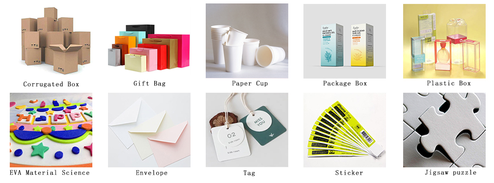 - Основные продукты: Ножницы для резки по форме, Машина для складывания и склеивания картонных изделий, Машина для швейной сборки коробок, Машина для ламинирования гофрированной бумаги, Машина для резки бумаги, Машина для производства бумажных мешков, Цифровая печатная машина, Машина для производства бумажных чашек, Машина для формирования коробок, Автоматическая упаковочная машина, Машина для склейки коробок, Машина для УФ-наклеек