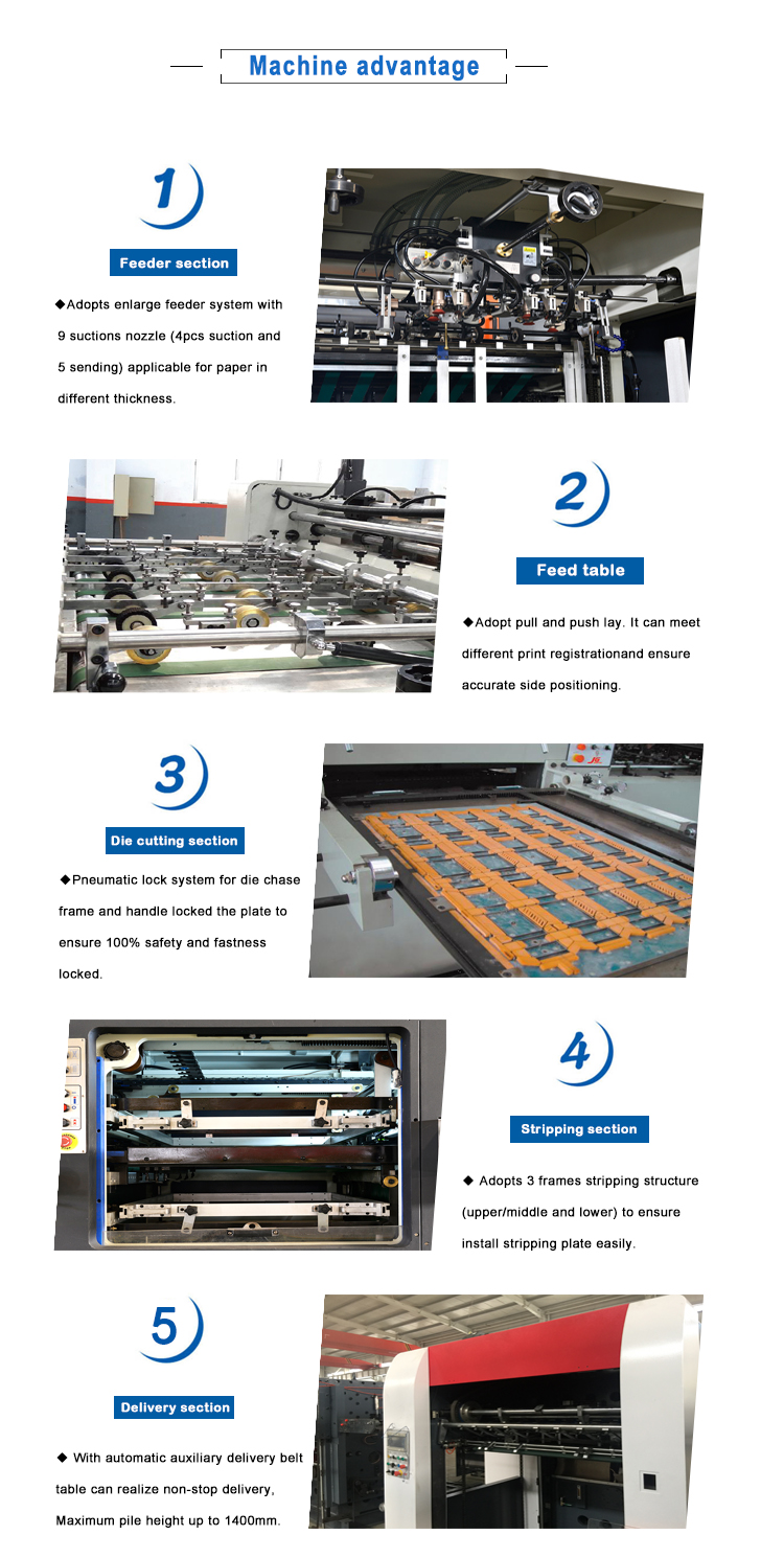 1. Механизм предварительной загрузки бумаги, функция автоматической тонкой настройки стола для бумаги, функция непрерывной циклической загрузки бумаги (опционально), что экономит время на замену бумаги и повышает производительность.