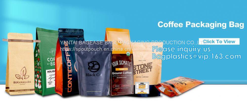 Пакеты для кофе из фольги с высокой барьерной способностью, индивидуальной печатью, квадратным дном и молниевым затвором, упаковочные пакеты для продуктов питания с окном