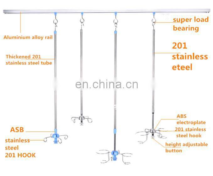 Нержавеющая стальная медицинская подвесная рельсовая инфузионная крюковая стойка для больничных рельсов, подвесные стержни с ламповым держателем капельниц