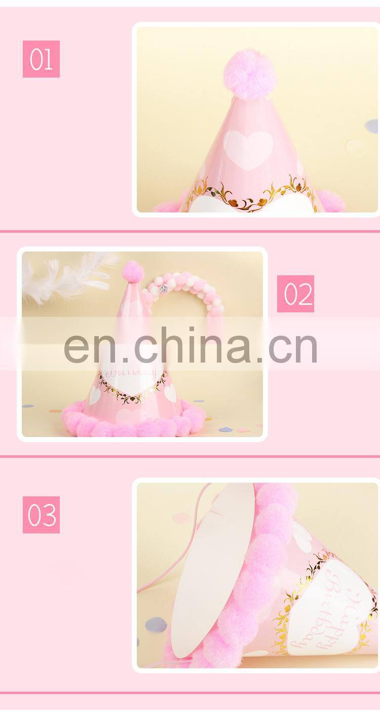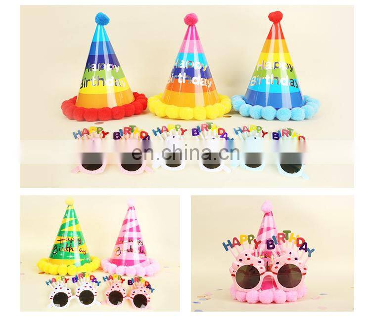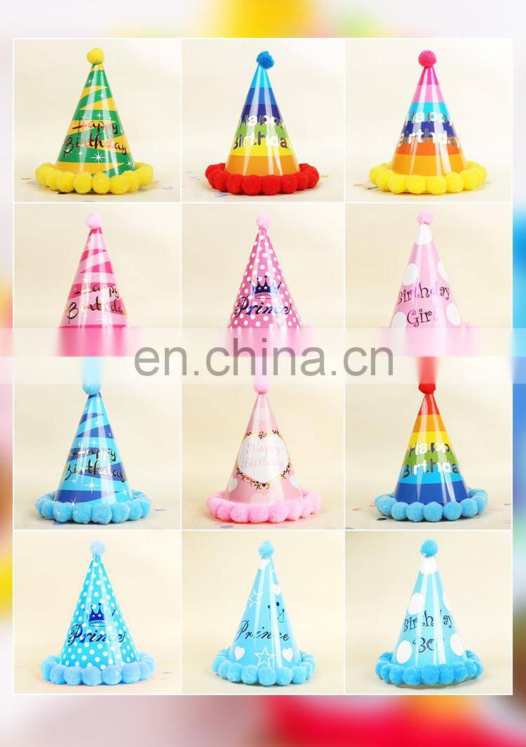 Милый детский и взрослый бумажный шляпчик для дня рождения с плюшевым шаром и узором ?С днем рождения?, цветной предмет для вечеринки