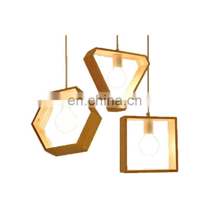 Главная > Продукты > Не сгруппированные > Современный простой геометрический люстра для ресторана. Нордский светильник на подвесе из цельного дерева для гостиной и бара