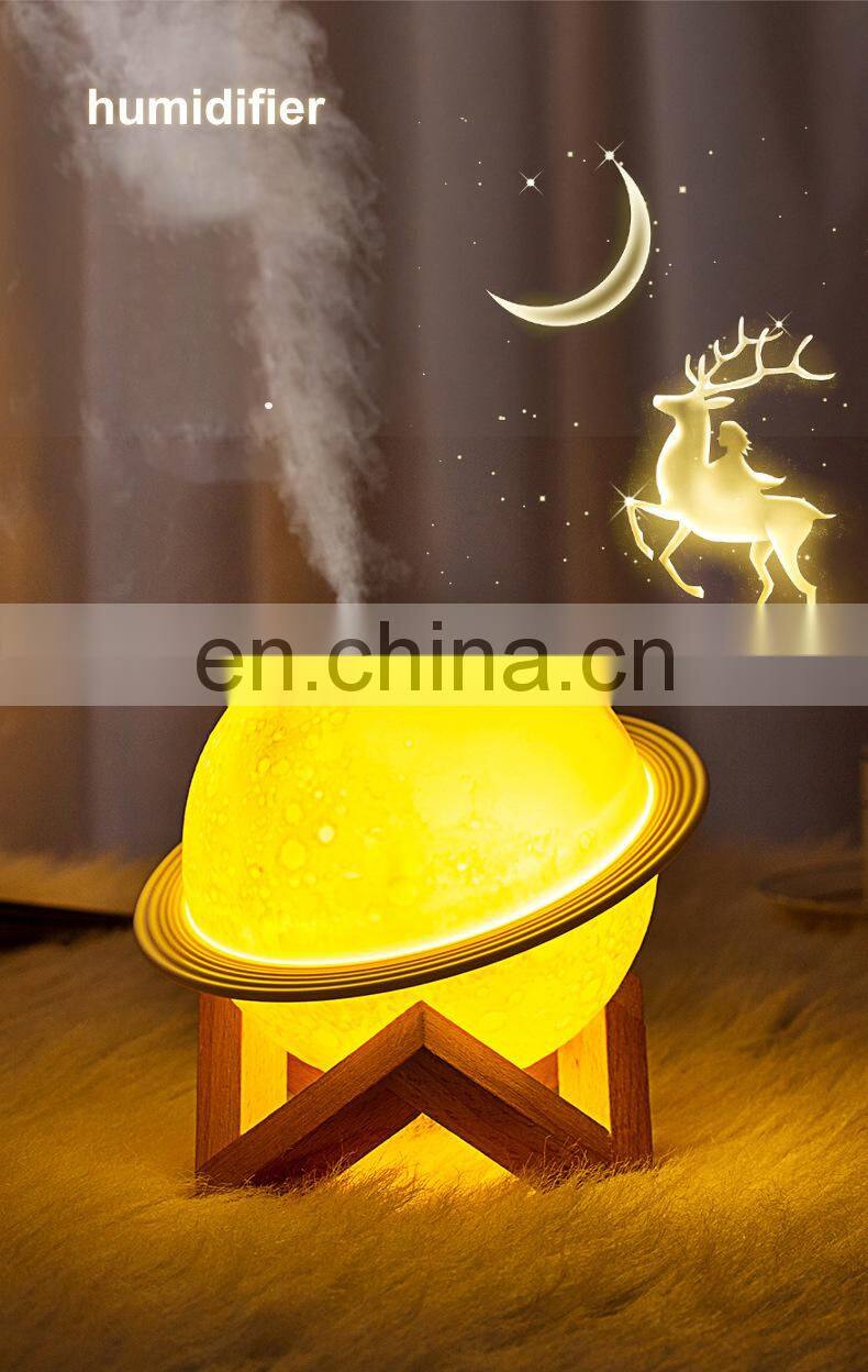 Увлажнитель воздуха с лунной дизайном и деревянной подставкой. Ультразвуковой увлажнитель воздуха с большим объемом и холодным туманом