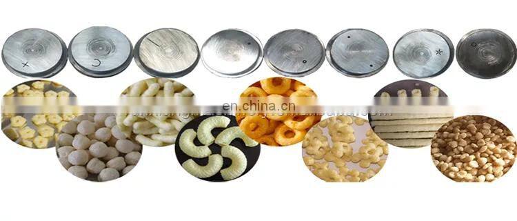 5. Форма закусок определяется комбинацией отверстий в матрице, включая шарик, трубку, палочку, кольцо, фруктовый кольцо, звезду, колесо и цветок и т. д. Все производимые закусочные продукты хрустящие, легко усваиваются и сохраняют питательные вещества.