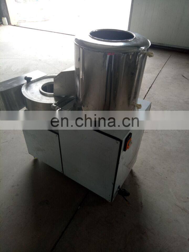 Корпус машины изготовлен из высококачественной нержавеющей стали. Он не подвержен коррозии и чист. Он использует центробежный вращение, трение, которое возникает, позволит хорошо шелуховаться картофелю. Очищенная кожура картофеля автоматически выводится из выхода для отходов. В то же время, очищенный картофель будет промыт водой из водопровода.