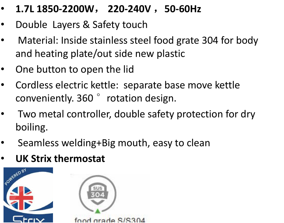 Главная > Продукты > электрический чайник > 2022 новый электрический чайник объемом 1,7 л из нержавеющей стали 304, электрический кувшин