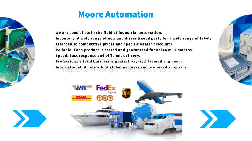 MOORE?является?экспертом с более чем 12-летним опытом работы на рынке промышленных деталей. Мы часто работаем с компаниями, у которых есть устаревшее оборудование или которым часто требуется приобретать запчасти на склад. Мы все знаем, что срок эксплуатации устаревших продуктов очень важен для компаний, которым необходимо поддерживать работоспособность своего оборудования.?Вы можете просто ввести модель или бренд, который вам нужен, на нашем сайте, или оставить нам сообщение. Мы ответим и пришлем вам коммерческое предложение в кратчайшие сроки. Благодаря сочетанию низких цен и высокой способности обеспечить быструю поставку, клиенты по всему миру доверяют и полагаются на Moore для удовлетворения всех своих потребностей в автоматизации поставок.