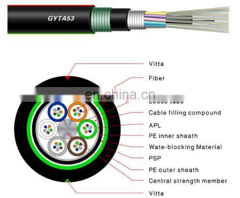 GYTA53 Подземный броневой волоконно-оптический кабель с свободными трубками для наружного применения с 4-288 волокнами, предназначенный для прямого укладки в землю