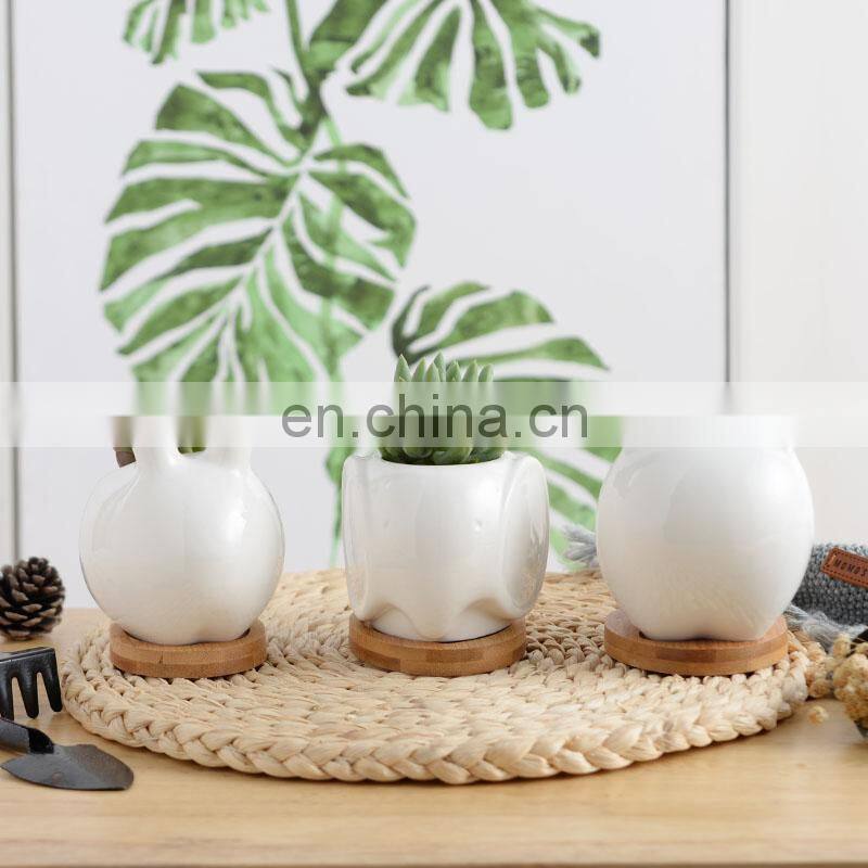 Самые продаваемые настольные вазы для цветов, сковороды для приготовления пищи на открытом воздухе, оптовые садовые керамические горшки для суккулентов, горшки для мелких растений с белой глазурью