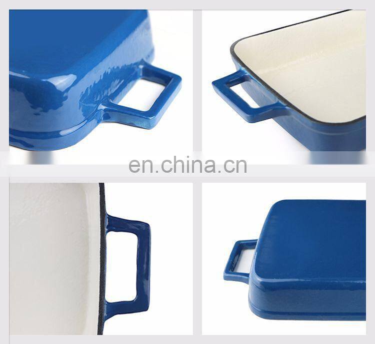 - Эмалированная чугунная круглая дюйчская кастрюля с крышкой и двойными ручками, прочная и маленькая, 5 л, синяя