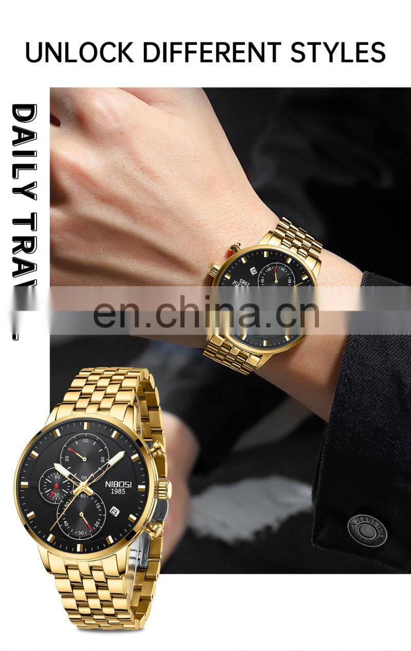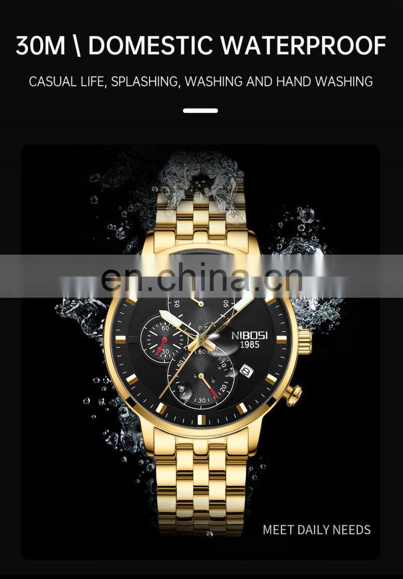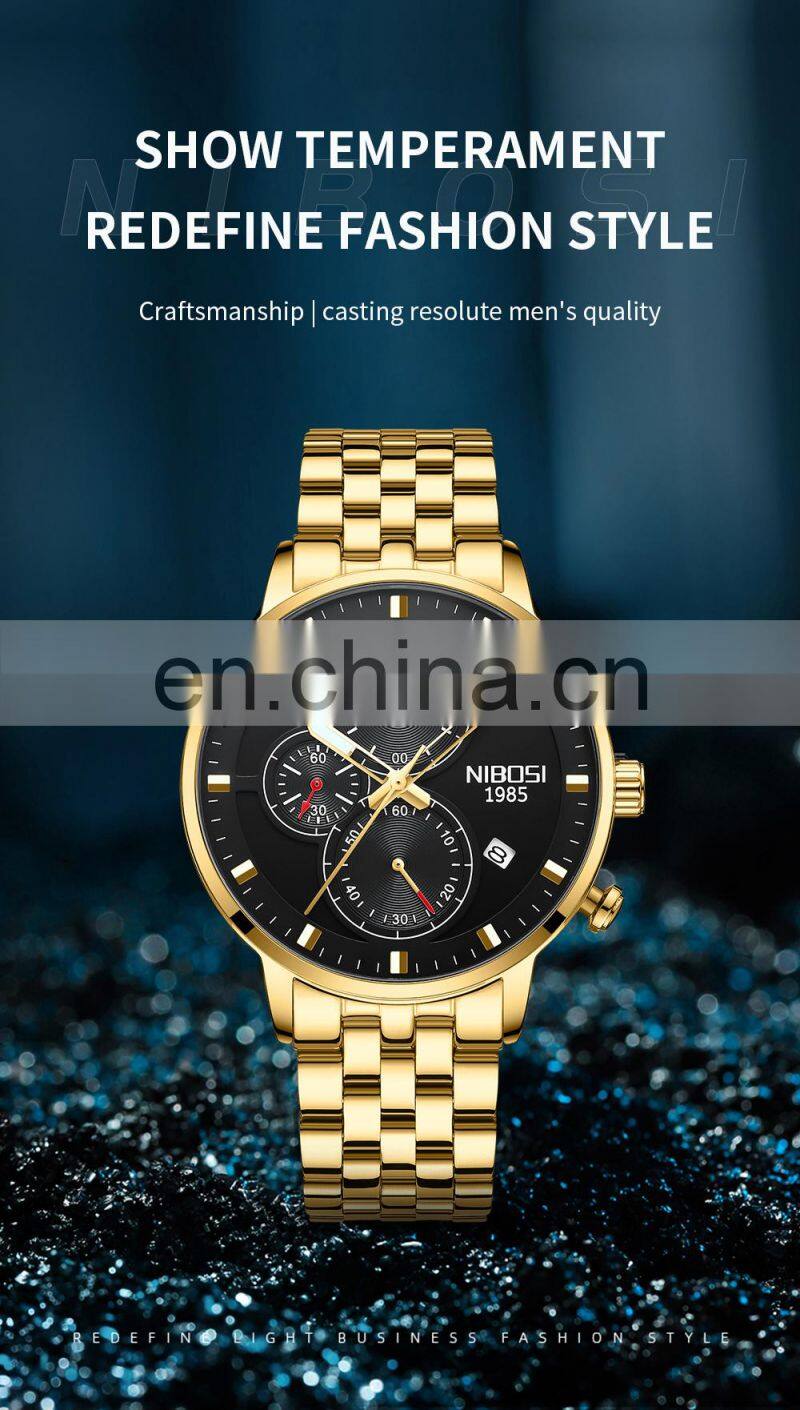 NIBOSI - новый бренд кварцевых часов для мужчин. Спортивные часы для мужчин с стальной браслетом, военные часы, водонепроницаемые, золотые наручные часы для мужчин. Relogio Masculino