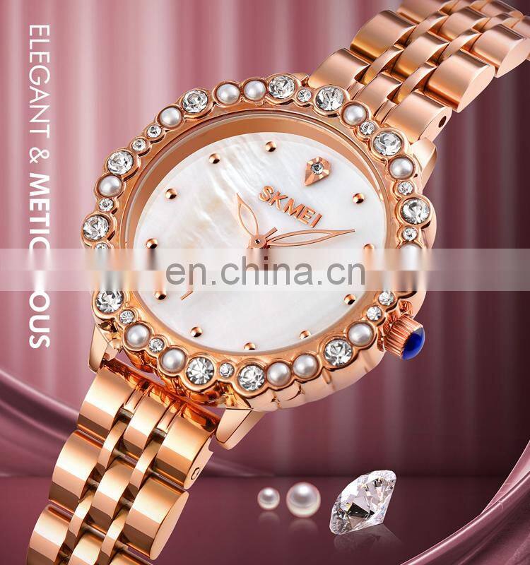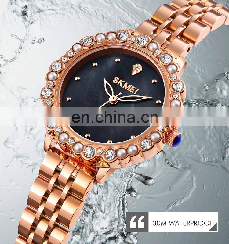 SKMEI 1658 женские кварцевые наручные часы с ювелирным дизайном, бриллиантовым кольцом и водонепроницаемостью до 30 метров, корпус из нержавеющей стали