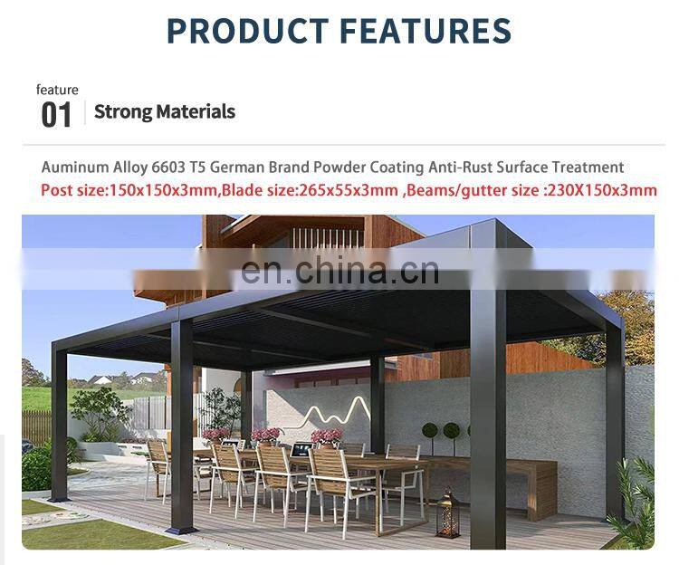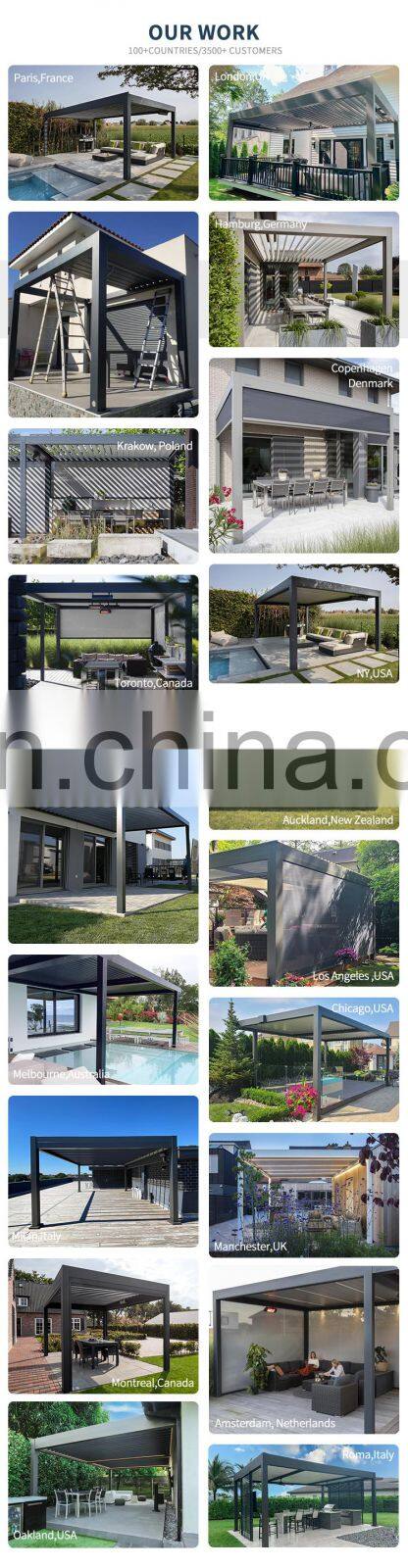 Наружный водонепроницаемый крышный электроприводной садовый пергола для террасы с автоматическими жалюзи, алюминиевый пергола для наружных помещений