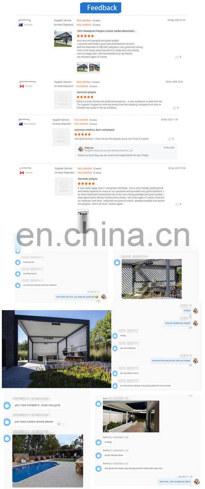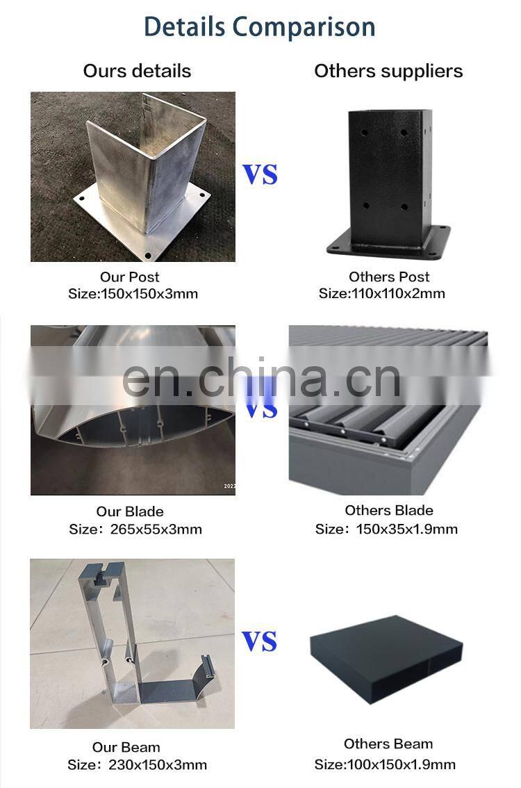 Мы проверенный поставщик на Alibaba.com, и мы можем предоставить 10-летнюю гарантию, поэтому если вы столкнетесь с какой-либо проблемой при использовании этого алюминиевого навеса с жалюзями, обращайтесь.