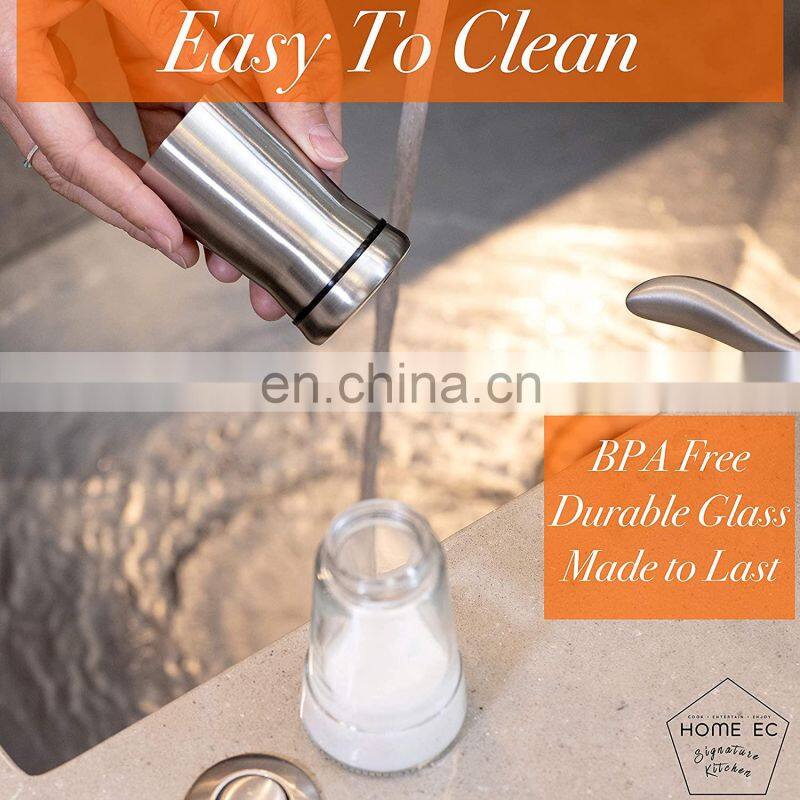 Набор стеклянных сольниц и перечниц с регулируемыми отверстиями для наливания - сольница и перечница из нержавеющей стали