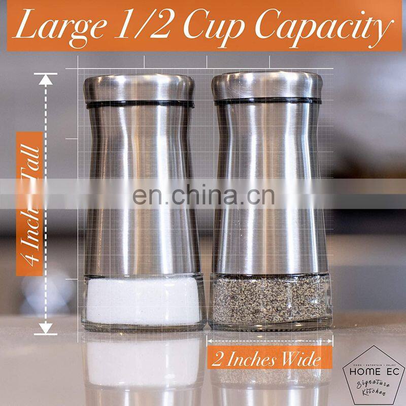 Солонка или перечница - прибор для разлива специй с регулируемыми отверстиями для налива - набор из нержавеющей стали и стекла