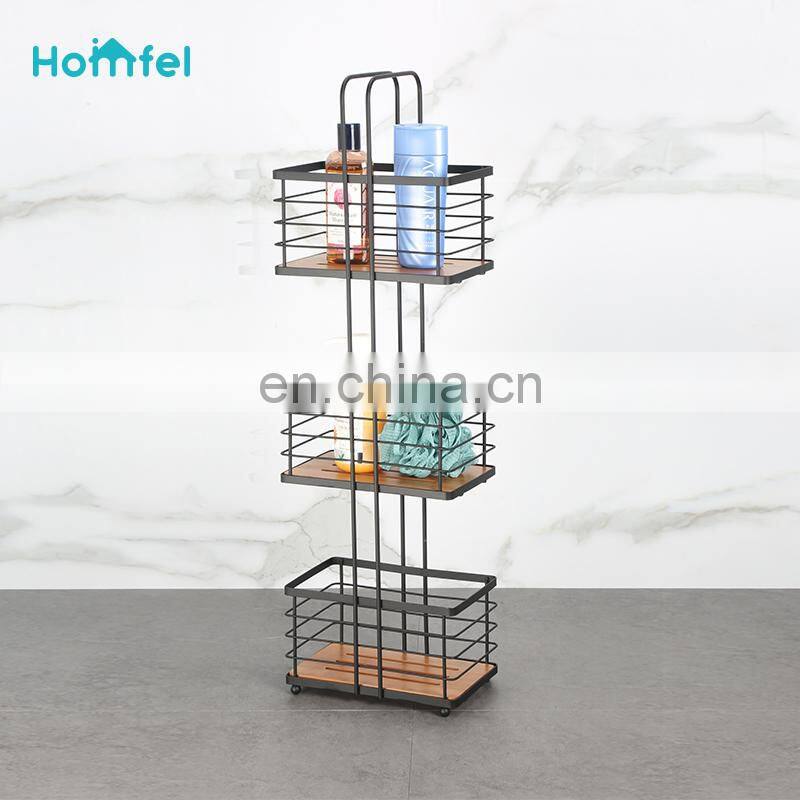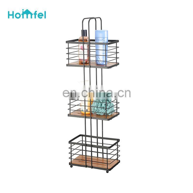 Главная > Продукты > Держатель для душевых принадлежностей > Стильный трехярусный металлический проволочный прямоугольный корзину для хранения с бамбуковым основанием. Прямоугольный органайзер для ванной, кухни, офиса