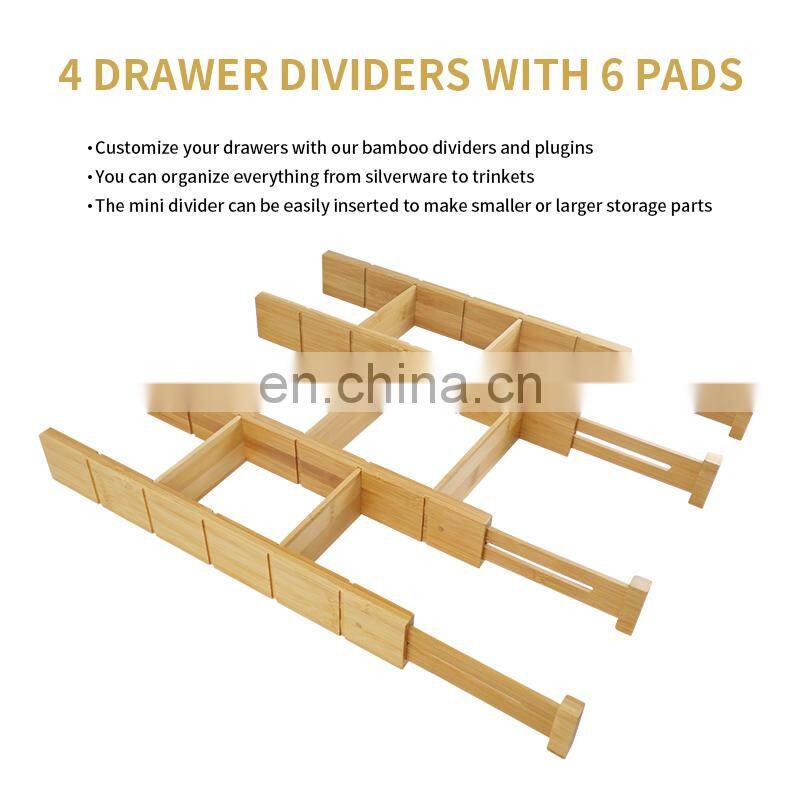 Настольный органайзер для кухонных ящиков, регулируемые раздвижные перегородки для ящиков, набор из 4 перегородок для ящиков из бамбука