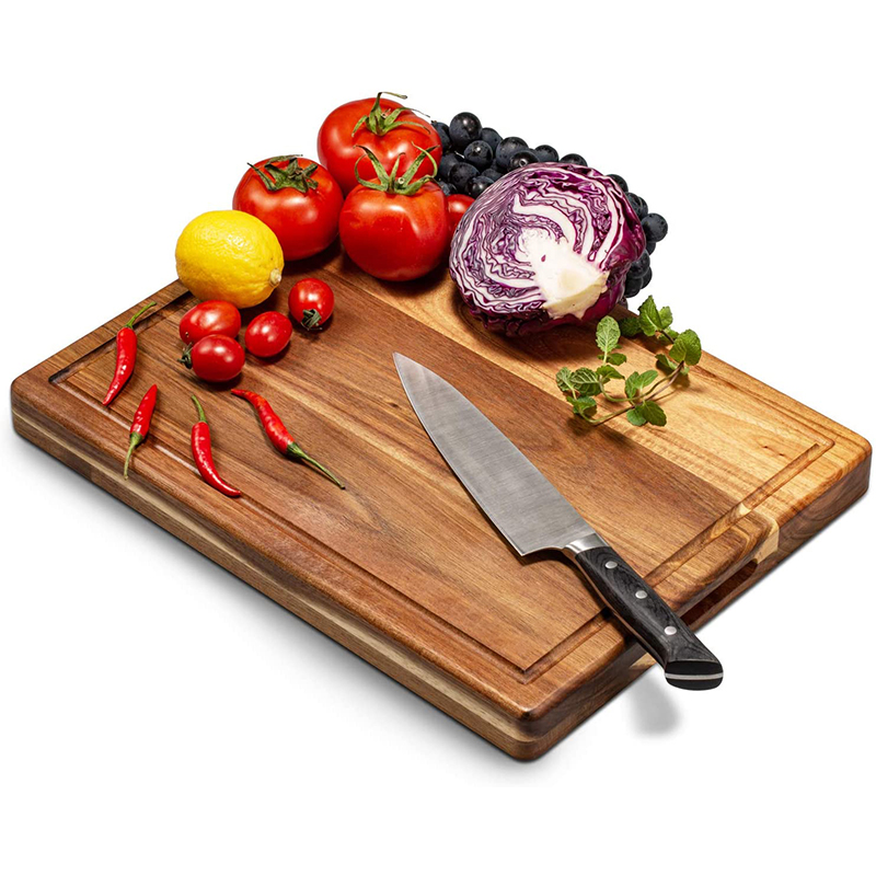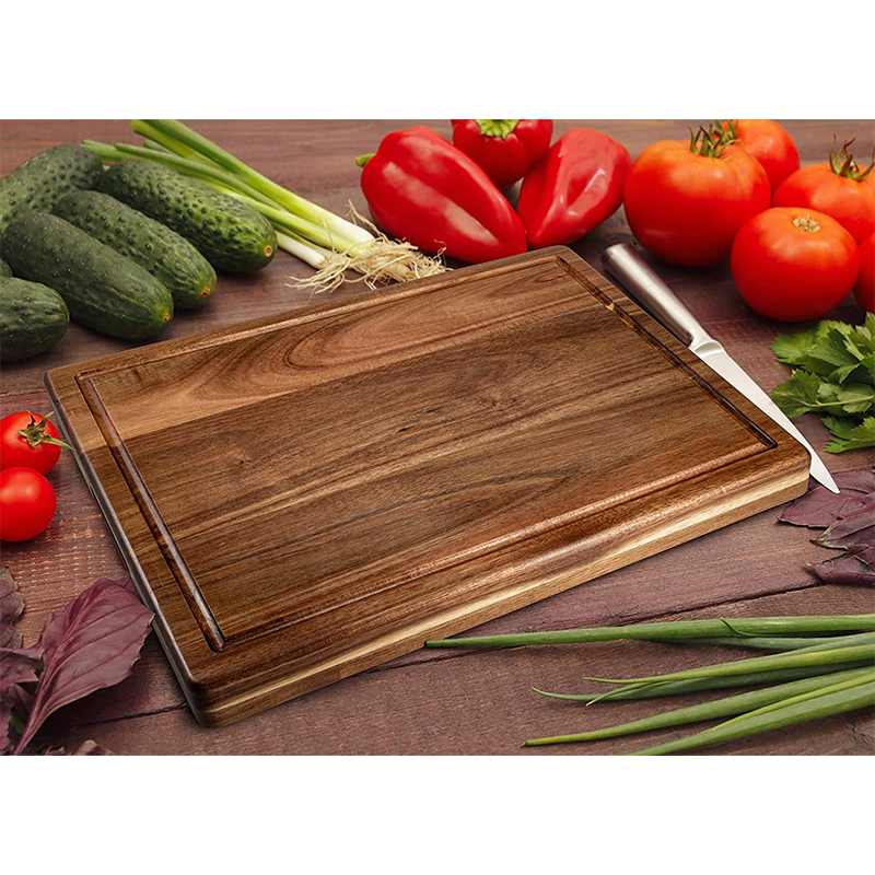 Заказной экологически чистый резиновый деревянный доска для разделки овощей и мяса с канавкой для сока