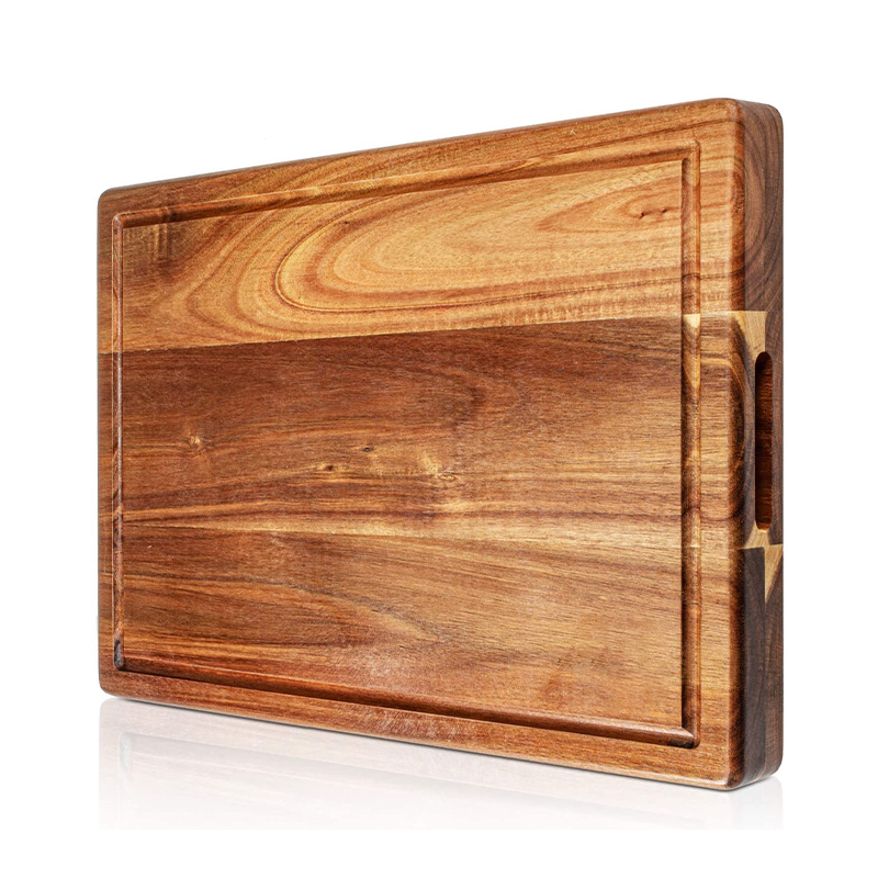 Большая переворачиваемая разделочная доска из акации с канавкой для сока
