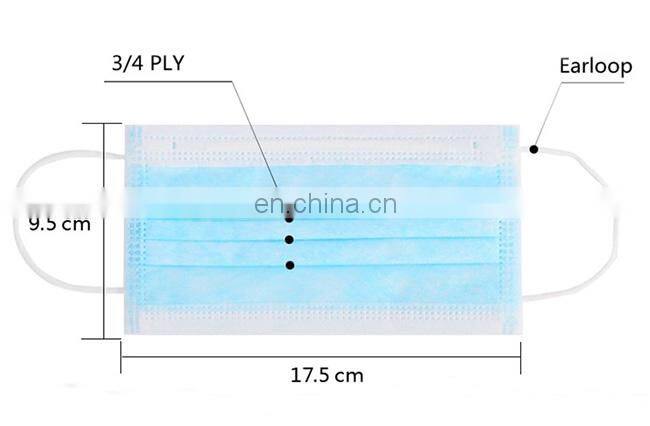 Одноразовая трехслойная нетканая маска для лиц с ушными петлями для больницы