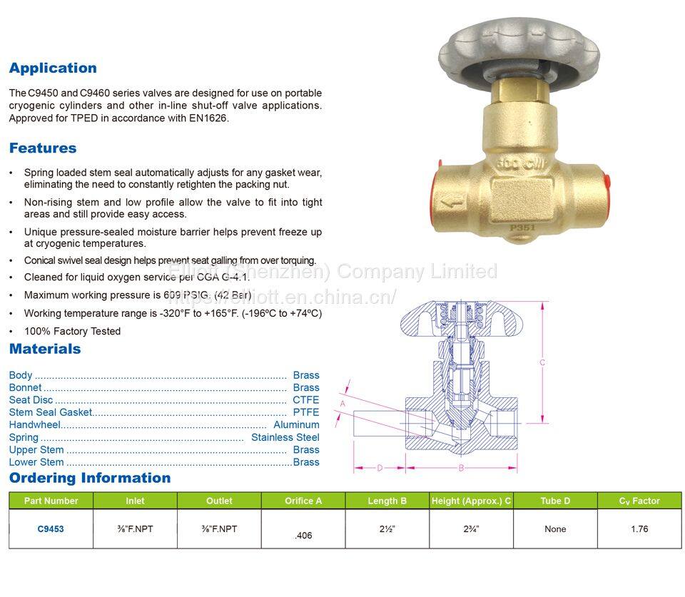 Клапаны серии C9450 предназначены для переносных криогенных баллонов и других приложений шаровых клапанов.