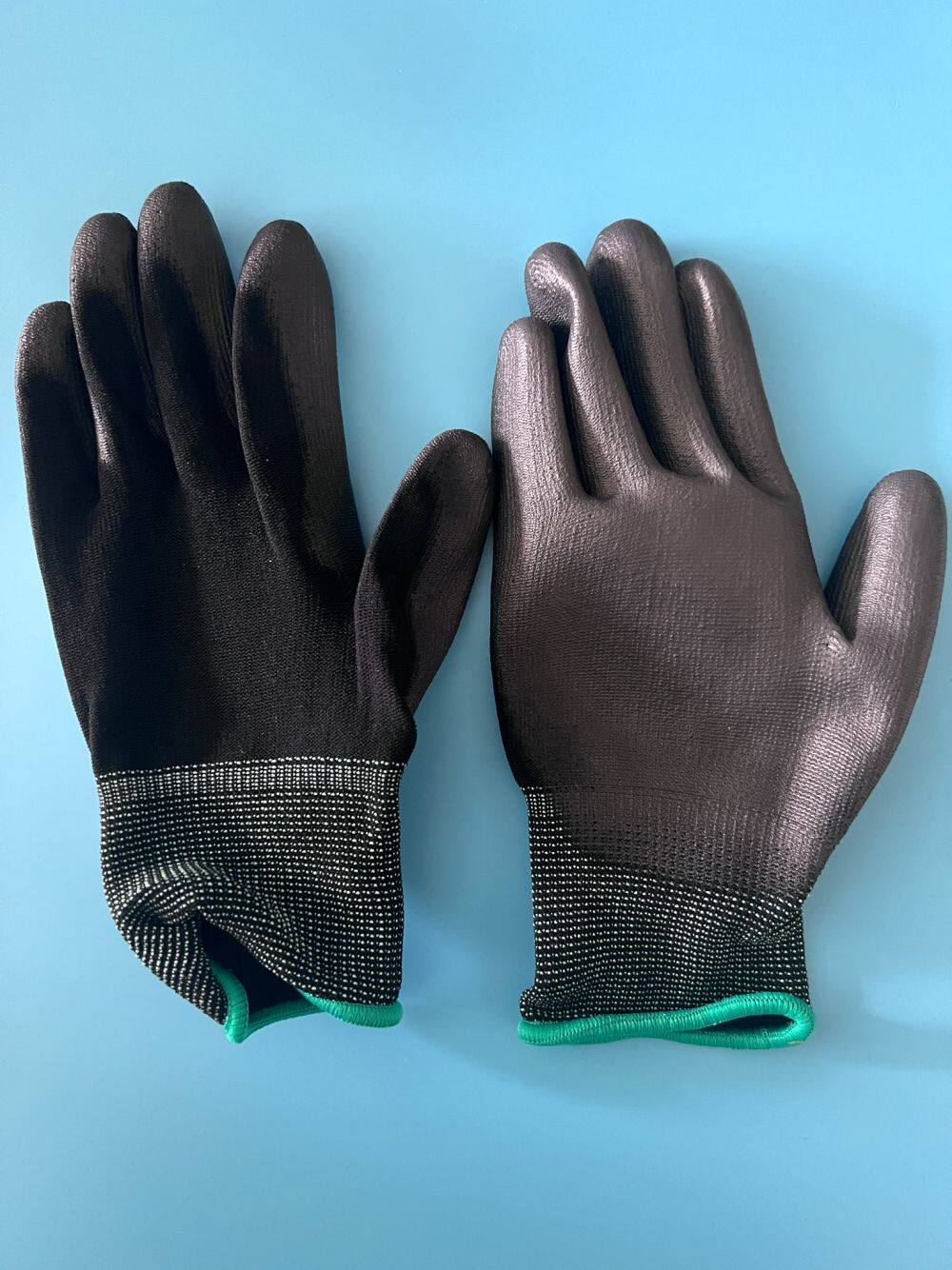 - Светло-зеленый флуоресцентный полимерный шнур 13 номера. Антиаварийные рабочие перчатки с пальцами и ладонью из черного шероховатого вспененного латекса с вязанным покрытием
