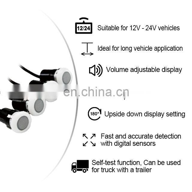 - Помощник при заднем ходе автомобиля, передний и задний датчик для грузовика, система обнаружения мертвых зон, водонепроницаемая камера заднего вида, система парковочных датчиков