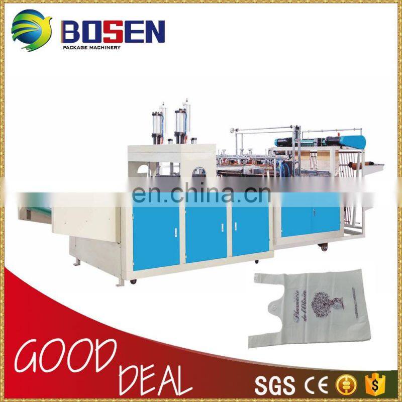 Машина для изготовления биоразлагаемых покупочных пакетов с термосваркой и резкой. Пластиковые пакеты типа T-shirt с печатью или без печати, с горячей резкой