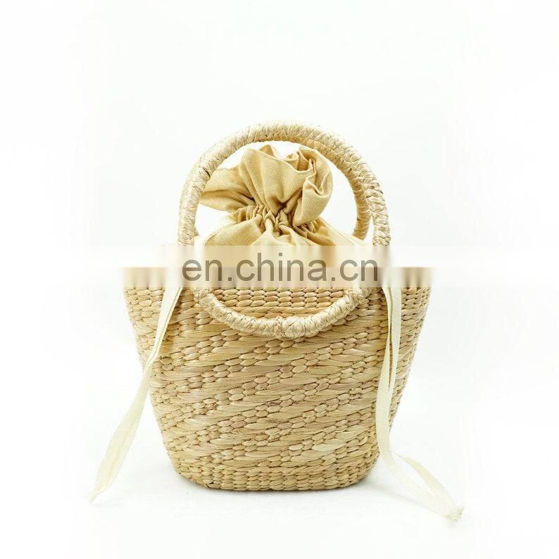 Сумка с шнуром и ручками на верху из водного гиацинта, сумка для лета на пляж оптом