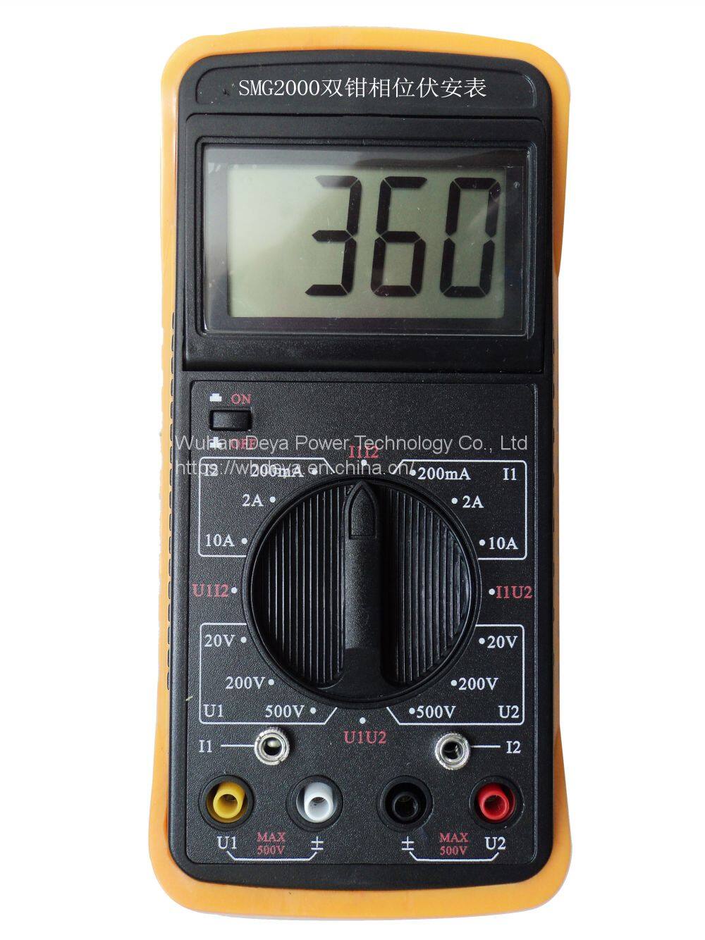Этот прибор представляет собой высокоточный, недорогой, портативный измеритель с двойным каналом ввода, предназначенный для полевых измерений напряжения, тока и фазы. С помощью этого измерителя очень удобно проводить измерения фазы между U-U, I-I и U-I на месте, определять порядок фаз индуктивных и емкостных цепей и трехфазного напряжения, определять группу соединения трансформатора, тестировать вторичные цепи и систему дифференциальной защиты шин, считывать фазовые отношения между группами ТТ в системе дифференциальной защиты, а также проверять правильность подключения счетчика электроэнергии. Для ввода измеряемого тока используется зажимной токовый трансформатор, поэтому при измерении не требуется отключать измеряемую линию. При измерении фазы между U1-U2 две входные цепи полностью изолированы друг от друга, что полностью исключает короткое замыкание измеряемой линии, которое может произойти в результате неправильного подключения, и, как следствие, обгорание измерительного прибора. Экран дисплея выполнен на основе жидкокристаллического индикатора с высоким контрастом, высота символов достигает 25 мм, а угол наклона экрана может быть свободно изменен на около 70° для достижения наилучшего визуального эффекта.