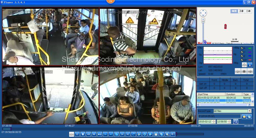 Shenzhen Sodimax Technology Co.,Ltd является всесторонней высокотехнологичной компанией, специализирующейся на разработке, производстве и продаже систем видеонаблюдения в транспорте и систем учета пассажиропотока в автобусах. Мы выпустили первый ПК-3G мобильный регистратор видеоданных в 2010 году и запустили его на рынок, что вызвало широкое внимание. Затем в 2014 году мы успешно запустили бинокулярный счетчик пассажиров в автобусах с точностью более 95%, что соответствует мировым высочайшим стандартам. Мы специализируемся на разработке, производстве и продаже систем видеонаблюдения в транспорте, комплектов 3G/4G/GPS-мониторинга, интеллектуальных систем мониторинга диспетчера автобуса, счетчиков людей с видеопотоком. Наши продукты включают в себя SD/ HDD мобильные регистраторы видеоданных, 3G или 4G регистраторы видеоданных с дистанционным контролем, мультимедийную рекламу в транспорте, автомобильные камеры, поддержку управления пантографом, реализованную локальным клиентским программным обеспечением. Они широко используются в различных транспортных средствах, например, для учета пассажиров в автобусах, в логистических автомобилях, авто правоохранительных органов, скорой помощи и т.д.