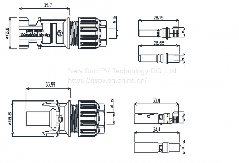 NewSun 4F0-15 Солнечный кабельный предохранительный разъем постоянного тока 1500 В