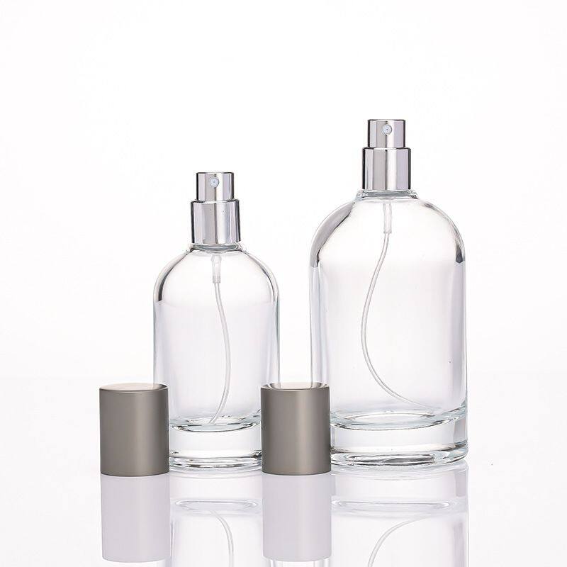 Главная > Продукты > стеклянная бутылка > Произвольные круглые прозрачные пустые стеклянные флаконы для ароматов 30 мл, 50 мл, 100 мл. Стеклянные флаконы для парфюма с распылителем и крышкой
