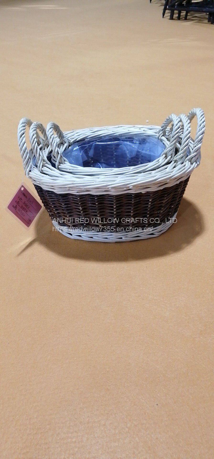 Главная > Продукты > Козырьковая корзина > Новый дизайн корзины из вербы с ручками и внутренним слоем для цветов и растений