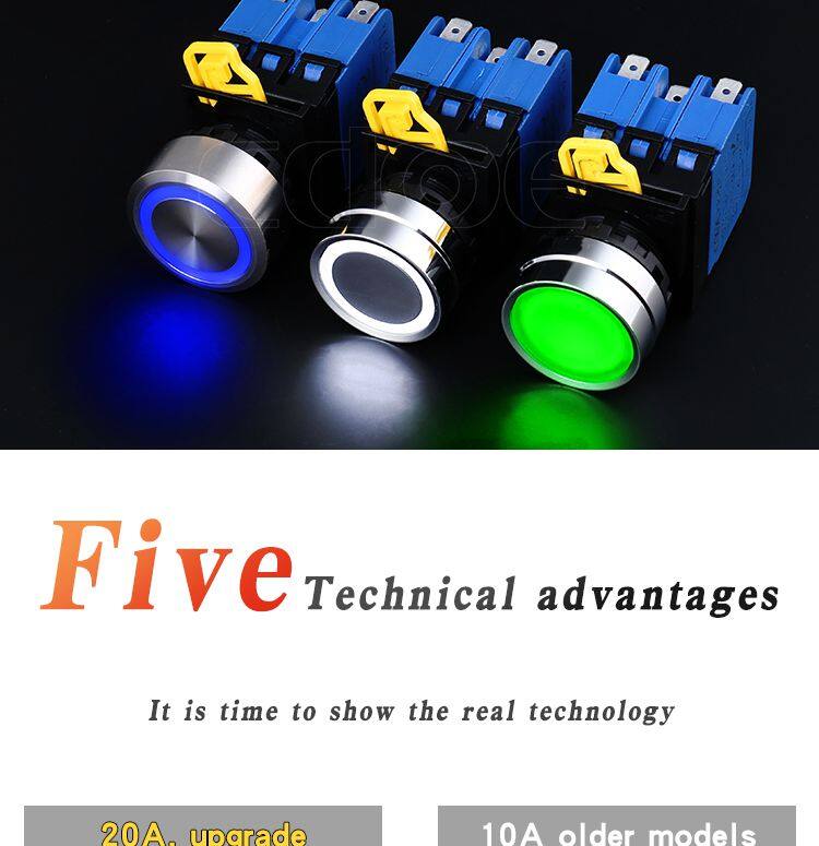 IP67 19 мм плоский головной кольцевой светодиодный 220 В кнопочный выключатель с подсветкой