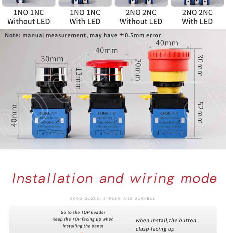 - Основные продукты: металлические кнопочные выключатели, пластиковые кнопочные выключатели, индикационный светильник, селекторные выключатели, аварийные кнопочные выключатели, сигнальный светильник, ключевые выключатели, буззер, ла38 кнопочный выключатель, xb2 кнопочный выключатель, lay5 кнопка, аварийная кнопка