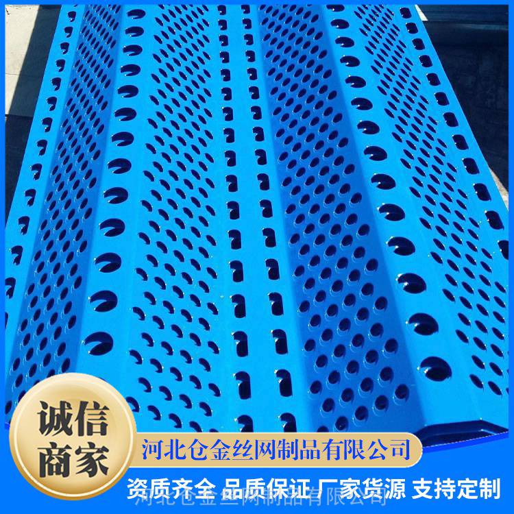 Главная > Продукты > Ветрозащитная пылезащитная сетка > Металлическая ветрозащитная пылеулавливающая сетка. Сетка из стали для фильтрации воздуха на площадках. Голубая перфорированная ветрозащитная панель. Толщина 0