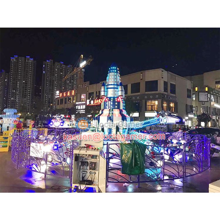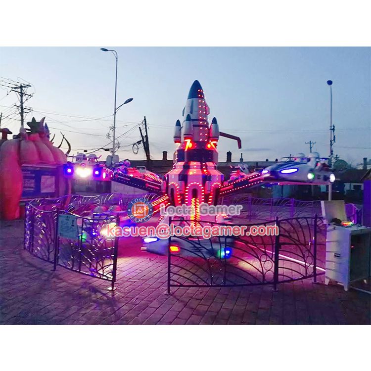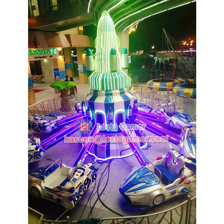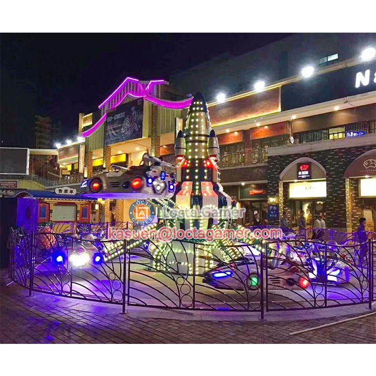 Г uangdong Zhongshan Tai Le Play детская внутренняя и внешняя механическая игровая аппаратура из ФРП в виде вращающегося летающего тарелка с 8 местами для катания на пространстве