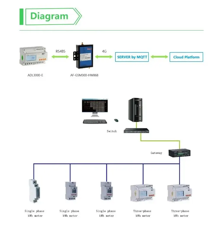 Система дистанционного онлайн-мониторинга солнечных фотоэлектрических систем ADW300 4G беспроводной трехфазный интеллектуальный счетчик энергии с MQTT
