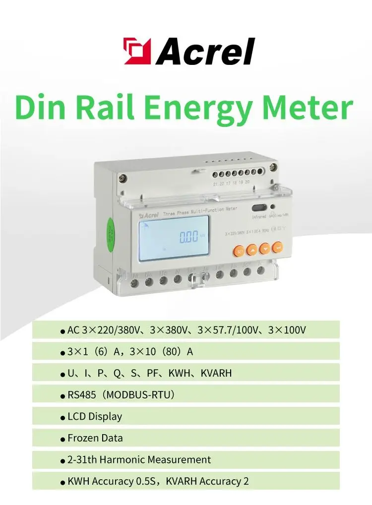 - Надежная работа. Счетчик потребления электроэнергии постоянного тока на рельсовой основе Acrel DJSF1352-RN/D, двухконтурный, с сертификатами CE, UL/измерение постоянного тока на втором канале. Коммуникация RS485 Modbus-RTU
