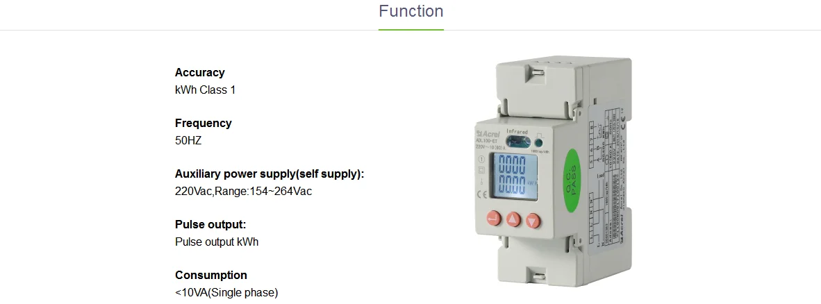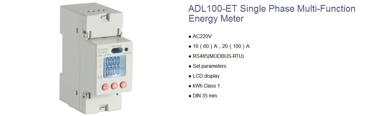 Главная > Продукты > Серия ADL счетчик энергии для DIN-рельса > ADL100-ET Различные типы измерения электрических параметров. Счетчик электрической энергии с интеллектуальным управлением. Однофазный