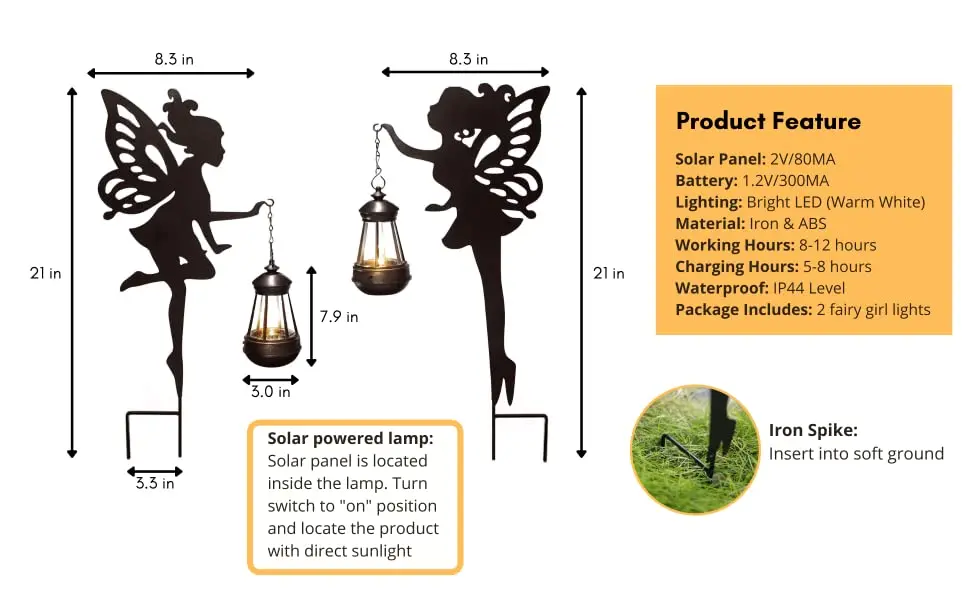 Металлический силуэт феи на садовые колышки "Stake Garden". Декоративный элемент для сада и газонов